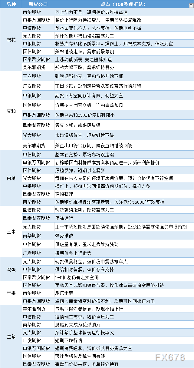 期货公司观点汇总一张图:11月29日农产品(棉花、豆粕、白糖、玉米、鸡蛋、生猪等)