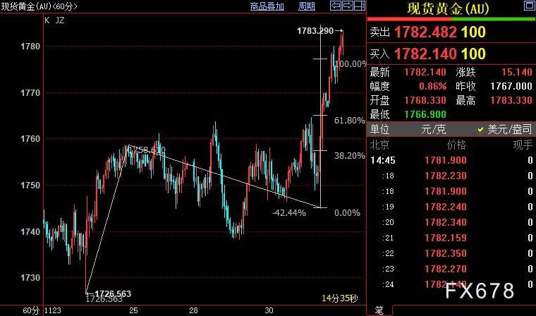 讯——周四(12月1日),现货黄金连续第三个交易日走强,创11月16日以来新高至1783.60美元/盎司,因美联储主席鲍威尔的讲话强化市场对美联储加息幅度放慢预期,施压美元续走低。但美联储抗通胀任重道远,面临劳动力市场吃紧的状况长期化,这可能限制黄金涨势。