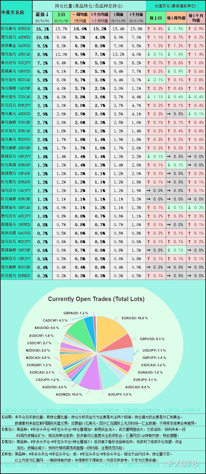 ★30个品种中,持仓比重最新值较上日变动最大的是:澳元加元 AUDCAD,变动幅度为3.1%(至8.9%);日变动第二高的是:纽元加元 NZDCAD,变动幅度为2.1%(至5.8%);日变动第三高的是:现货黄金 XAUUSD,变动幅度为1.2%(至9.5%);更多详见本文表格。