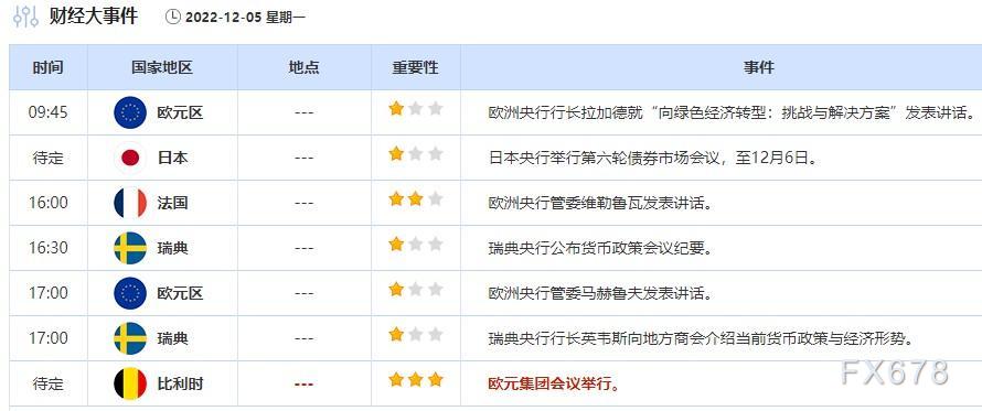 周一重要经济数据和事件