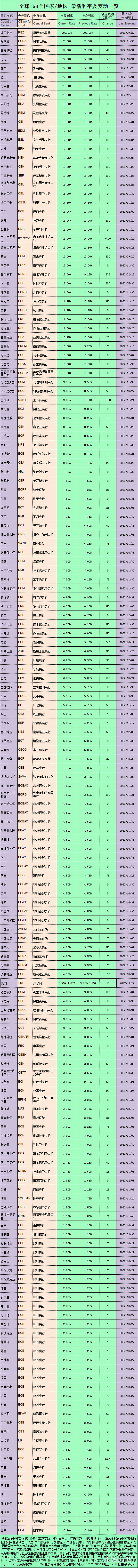 讯——美联储决议前,一览“全球168个国家/地区 最新利率及变动”。今天交易日纽约时段,北京时间周四(12月15日)凌晨3点,将迎来美联储决议声明,同时出炉的还将有最新季度经济预测摘要(SEP)和利率点阵图,美联储主席鲍威尔则将在半小时后的3:30召开新闻发布会。