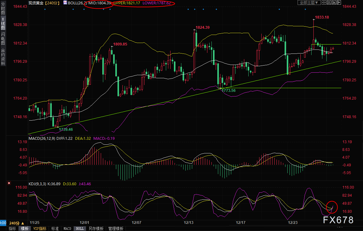 讯——周四(12月29日)亚洲时段,现货黄金震荡微涨,目前交投于1809.21美元/盎司,美元指数小幅走弱,给金价提供支撑,而且周三金价的回落再次守住了21日均线关键支撑,金市也出现了一些逢低买盘。本周以来,亚洲疫情相关消息对市场情绪影响较大,市场担忧情绪起伏不定,分析师整体略微偏向看涨黄金后市。