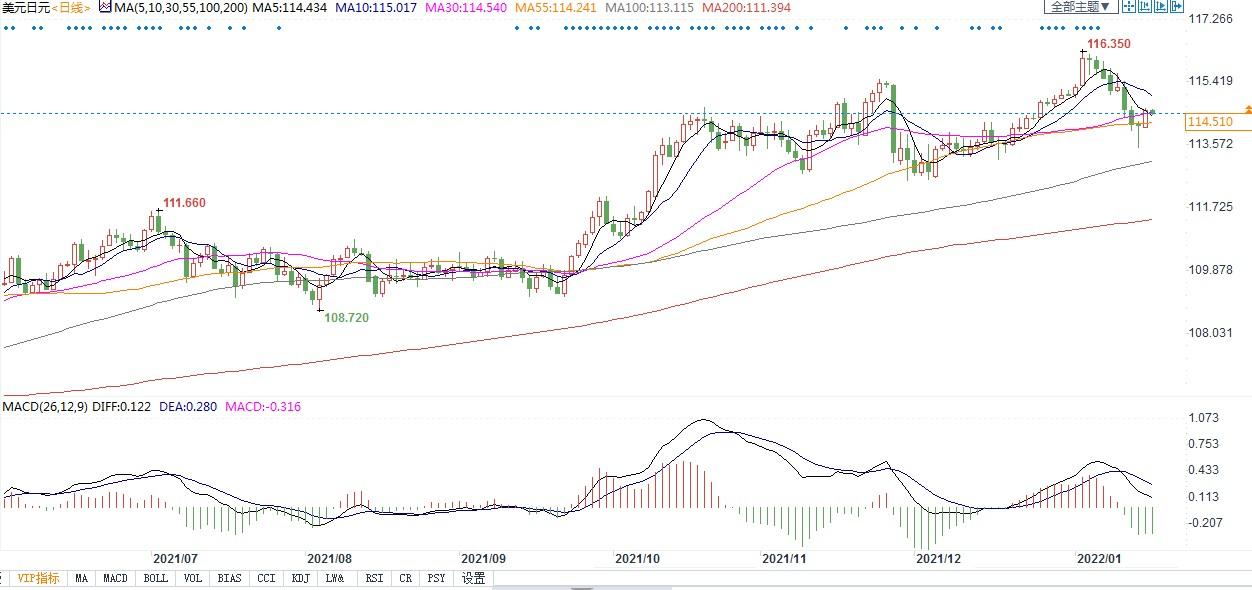 北京时间1月18日09:15,美元兑日元报114.49/52。