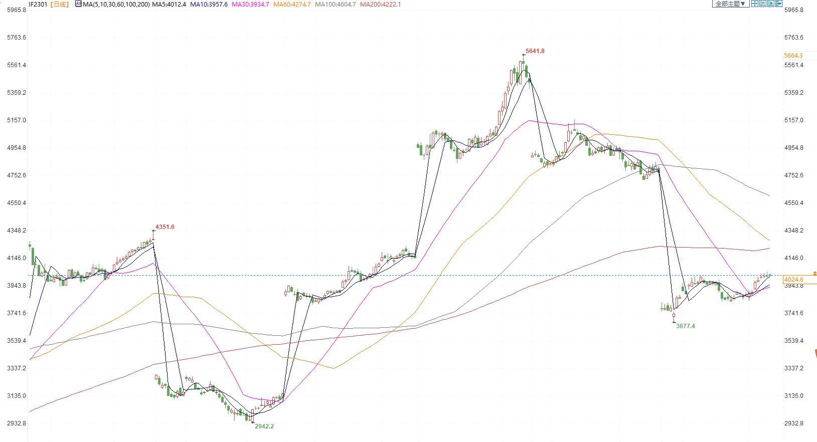 【今日涨跌】四大期指涨跌互现。IH2301收盘价为2746.2,收涨0.06%;IF2301收盘价为4024.6,收涨0.09%;IC2301收盘价为6021.6,收跌0.09%;IM2301收盘价为6492.0,收跌0.07%。