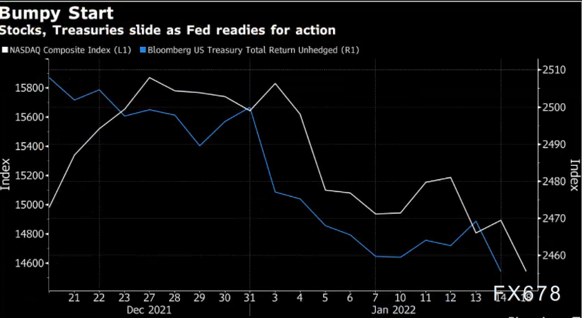 随着交易员越来越预期3月加息启动后,几个月内美联储将开始缩减债券组合,股票投资者变得越来越谨慎。