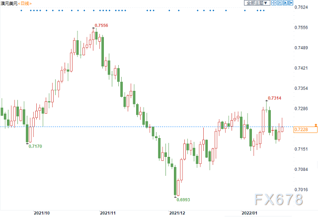 周四(1月20日)欧市盘前,澳元兑美元上涨近0.25%,因美国国债收益率本周涨势暂停,美元小幅走低,加元和澳元等货币受大宗商品价格高企和对未来全球经济成长的乐观情绪提振。澳元走强一度涨至0.7257,延续了前一天的涨势,澳大利亚强劲的就业数据也是支撑澳元涨势因素之一。