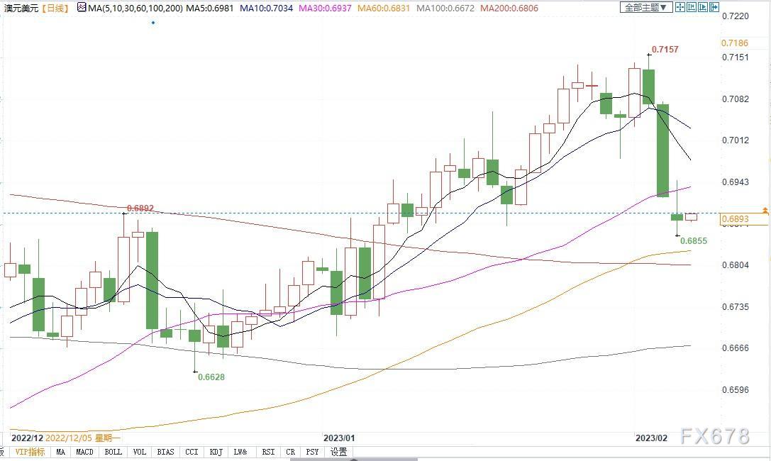 北京时间2月7日8:24,澳元兑美元报0.6893/94