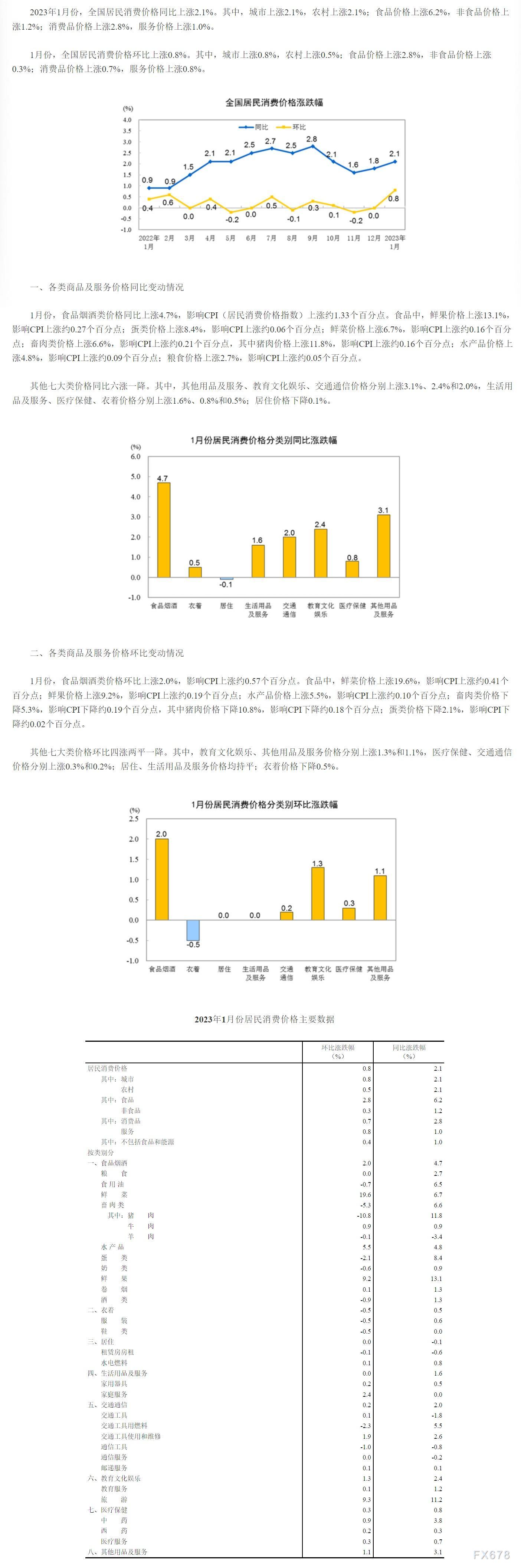 1月份,受春节效应和疫情防控政策优化调整等因素影响,居民消费价格有所上涨。