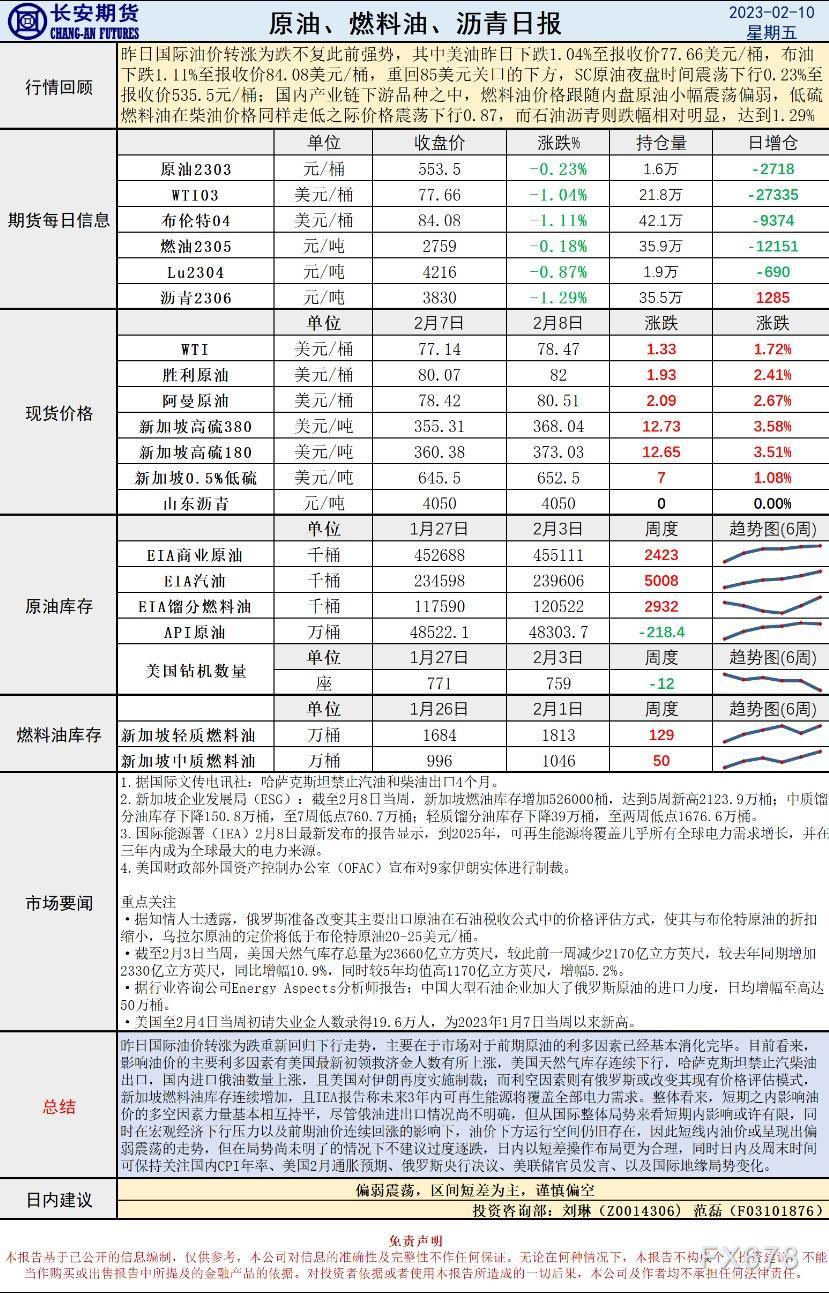 讯——2月10日,长安期货发布原油早评,称俄油改变定价模式,多空拉锯重回偏弱震荡,建议区间短差为主,谨慎偏空。