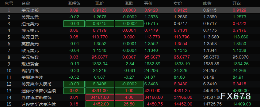 美元兑瑞郎下跌0.57%至0.9117;澳元兑美元跌0.62%至0.7181;纽元兑美元跌0.58%至0.6718。