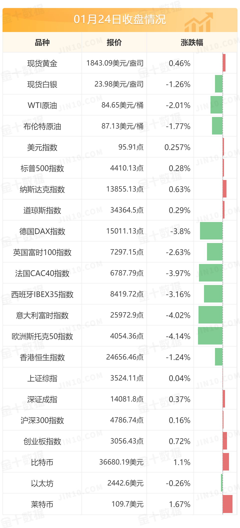 美元指数向上触及96,创1月11日以来新高,随后有所回落,最终收涨0.257%,报95.91。美国10年期国债收益率先跌后涨,最终收报1.776%。