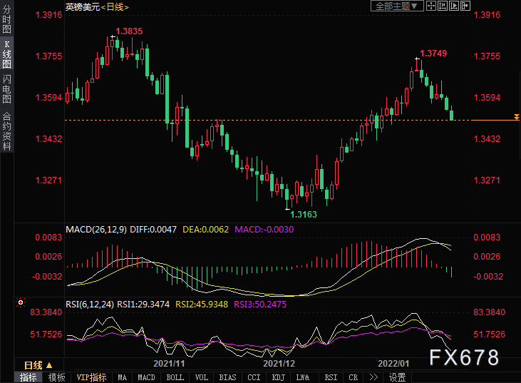 周一(1月24日)欧洲时段,英镑兑美元仍处于低迷状态,英国PMI数据公布后,英镑兑美元扩大跌幅至逾两周低点1.3500附近。