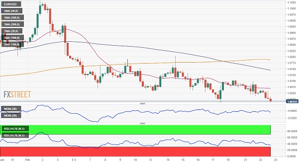 4小时走势图显示,欧元/美元上行空间受到温和看跌的20周期SMA的限制,该均线继续吸引抛售兴趣。100周期SMA走低,目前略高于上述斐波那契阻力位。与此同时,技术指标在负值水平内下行,强度参差不齐,仍支持短期内继续看空。