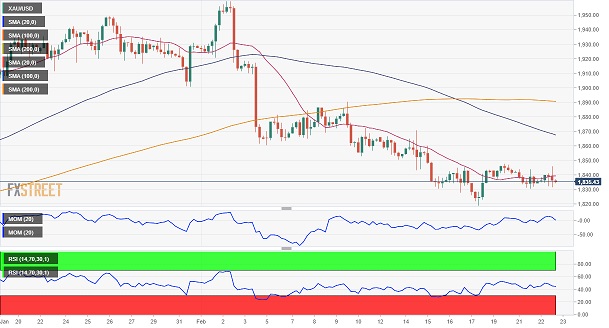 从4小时走势图来看,短期内黄金前景为中性偏空。自周二早些时候以来,金价在20周期SMA上方迅速回落。与此同时,金价位于坚定看跌的100周期SMA下方,该均线目前徘徊在1869.00美元/盎司附近。此外,技术指标在中线以下无方向,使金价走势风险偏于下行,不过尚未确认这一点。