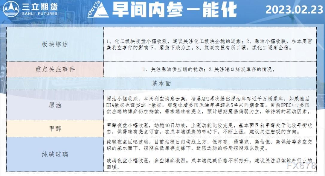 讯——三立期货早间内参显示,原油短期震荡偏弱为主,甲醇上涨动能比较充足,建议关注宏观方向,玻璃多空博弈激烈。