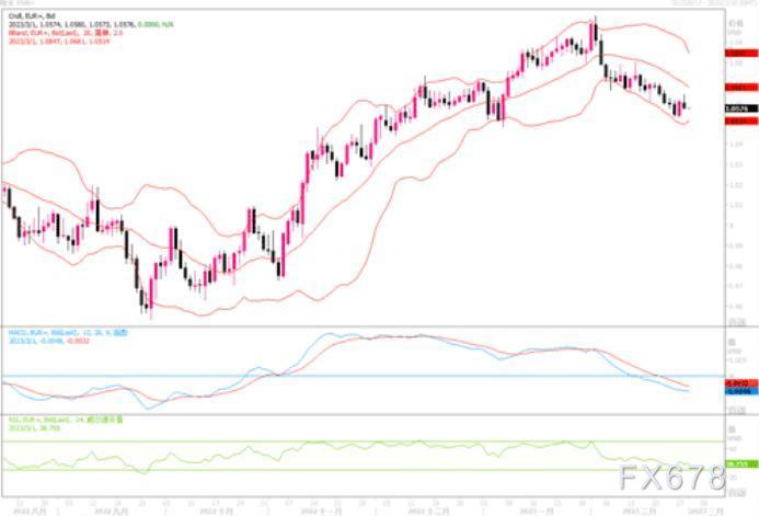 周二(2月28日)尽管当日美国公布的经济数据显示经济增长有所降温,美元自高位略有下降,但美元指数上涨0.32%,报104.98,实现了2.7%的月线涨幅。周二公布的数据显示,美国消费者信心在2月意外减弱,从1月的106.0下降到102.9。接受路透访查的经济学家此前预估为108.5。另一份报告显示,美国12月独栋住宅价格以2020年夏季以来最慢速度上涨。2月芝加哥采购经理人指数(PMI)企业调查结果也弱于预期。经济增长数据虽显弱,然而近期反映通胀的数据却仍居高不下,引发市场预计美联储将不得不比此前认为的将利率升得更高,并保持高利率更长时间,以对抗通胀。这是近期刺激美元回强的主要原因。周二当天,欧元区法国西班牙两国的CPI数据2月份意外加速至历史高点。同时,欧元区消费者信心指数连续第五个月回升,升至一年以来的最高水平。在近期部分经济指标回暖的情况下,市场对于欧央行继续加息的预期有所提高。但周二数据并未能激起欧元的走升。这主要是市场还是在担心,欧元区大幅加息会否引起欧元区经济的衰退。目前欧元兑美元仍顽强守护在1.05之上,若能守住,上方进击目标1.07-1.08。若跌穿,下方空间将会进一步扩大。