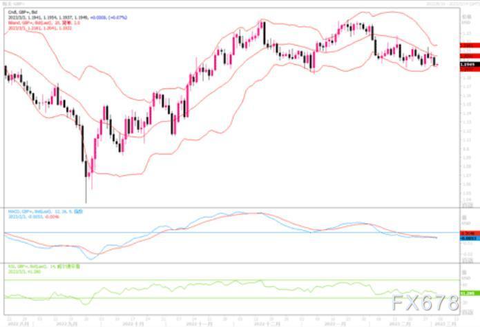 周四(3月1日),英镑兑美元报1.1940美元,日内下跌0.76%,盘中最低曾抵达1.1925。美元和英国利率前景推动了英镑走势。英国央行总裁贝利周三的讲话暗示,在将利率从2021年12月的0.1%提高到4%后,该央行可能不需要再次加息。贝利说,“把利率继续调高一些”可能是合适的,“但什么都没有决定”。“贝利昨天的谈话更加鸽派,这无疑让英镑失去了一些动力。同时,美元指数=最新上升0.4%至104.8。而且周四一位美联储高级官员的讲话提振了美元,他暗示本月晚些时候有可能加息50个基点。日线图上,隔夜英镑兑美元下跌后再度逼近近期横盘低沿1.1910,若撑持不住,英镑兑美元将拓深下滑的幅度,从而考验大区间震荡的下方支撑1.1800水平。而上方未有穿透1.22水平,或才能看到英镑转升的势头。