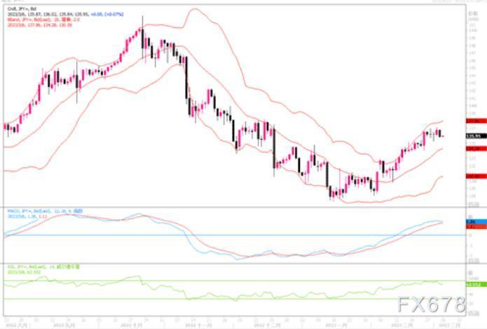 美元兑日元上周五(3月3)从两个半月高点下滑。周五当天公布的美国供应管理协会(ISM)的非制造业指数从1月份的55.2下滑至55.1,衡量美元兑六种主要货币的美元指数从本周初105.36的高点降至104.60,而投资者们也是借机对美元/日元进行了获利回吐的交易操作。与此同时,日本央行也有望在总裁黑田东彦下个月卸任后的一段时间内,开始取消非常规刺激措施。因为东京2月通胀数据连续第九个月超过日本央行的目标。若新任总裁植田和男上任后,在货币政策上有收紧的动作,或可刺激日元价值回归投机交易的重新抬头。目前日线图上,美元兑日元在137.00多次遇阻,技术指标MACD信号线似有死叉出现,短线须留意美元兑日元出现进一步回落调整的风险出现,下方初步支撑在135.00-133区域,若跌穿美元兑日元回落幅度将会加大。而若能撑持上述区域之上,美元兑日元将会进一步向高处反弹。