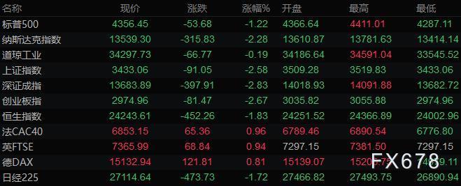 美股收盘情况:标普500指数下跌1.2%,报4356.45点;道琼斯工业平均指数下跌0.2%,报34297.73点;纳斯达克综合指数下跌2.3%,报13539.29点;纳斯达克100指数下跌2.5%,报14149.12点;罗素2000指数下跌1.5%,报2004.035点。