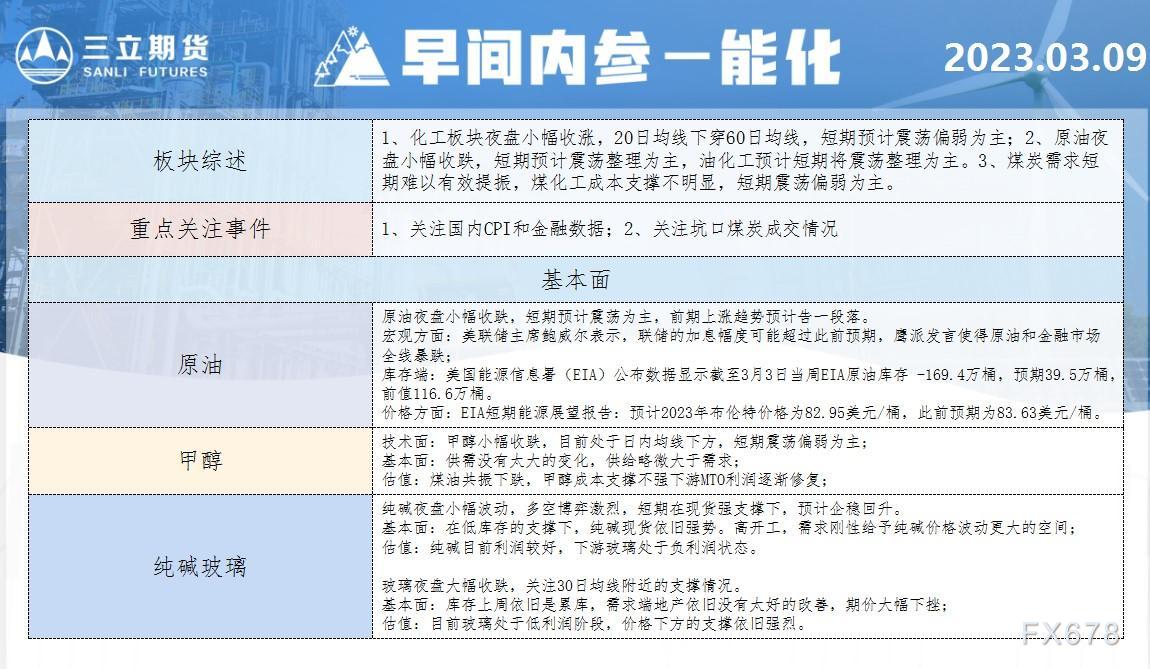 讯——三立期货早间内参显示,原油短线预计震荡为主,甲醇短期震荡偏弱为主;纯碱预计企稳回升。