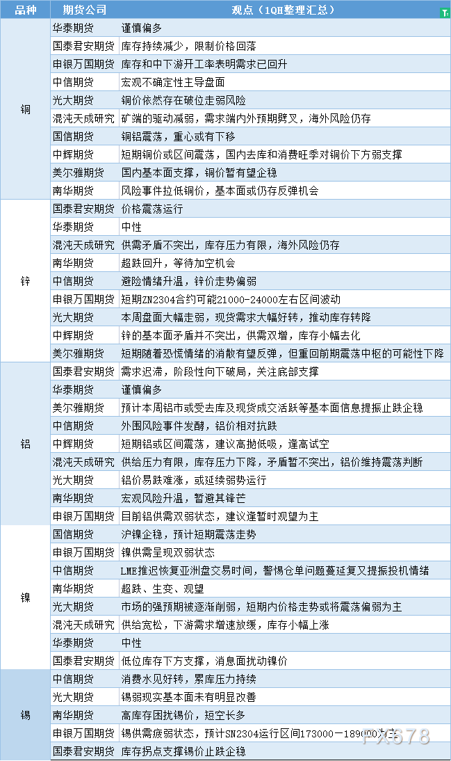讯——期货公司观点汇总一张图:3月20日有色系(铜、锌、铝、镍、锡等)