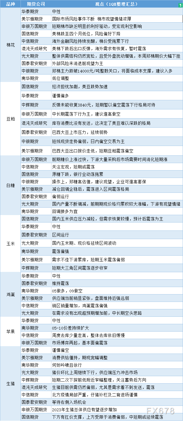 期货公司观点汇总一张图:3月20日农产品(棉花、豆粕、白糖、玉米、鸡蛋、生猪等)