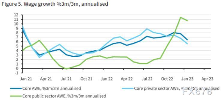 巴克莱经济学家阿巴斯·汗(Abbas Khan)周三在一份研究简报中写道:“英国的工资增长正在减速。1月份是私营部门工资月率增长连续第二个月非常疲弱。即使在频率稍低的水平上,增长势头也明显放缓,300万/ 300万的增长现在明显放缓。”