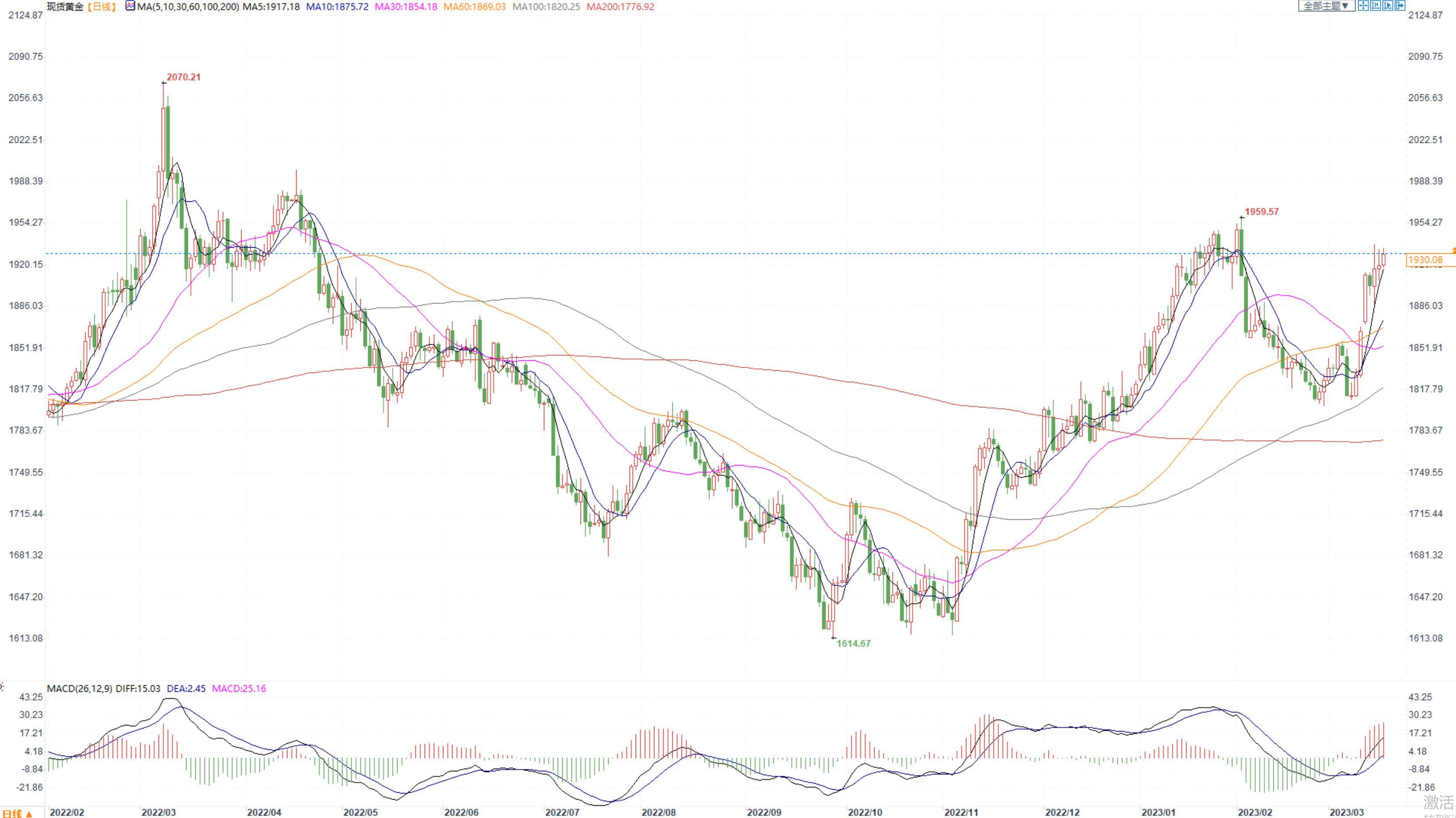 讯——周五(3月17日)当周金价大幅走高,突破1900美元并站稳在其上方。诸多因素支持金价走高,欧美银行业危机引发了市场的担忧情绪,是推升了避险金价的主要因素。此外,中国经济逐步复苏也推升了黄金的买盘需求。不过,美联储升息的预期或限制金价上涨。