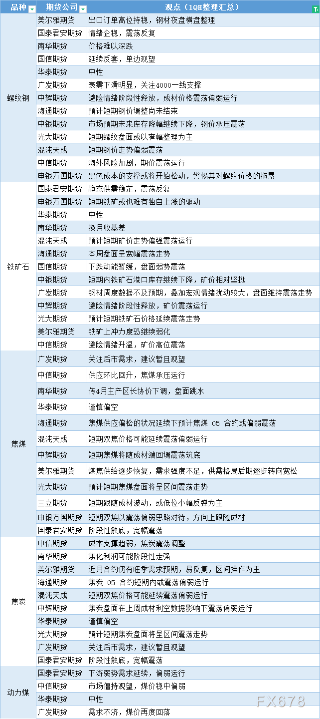 讯——期货公司观点汇总一张图:3月28日黑色系(螺纹钢、焦煤、焦炭、铁矿石、动力煤等)