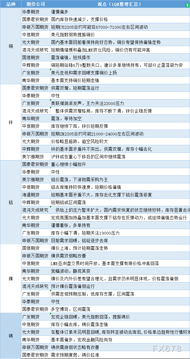 讯——期货公司观点汇总一张图:3月28日有色系(铜、锌、铝、镍、锡等)