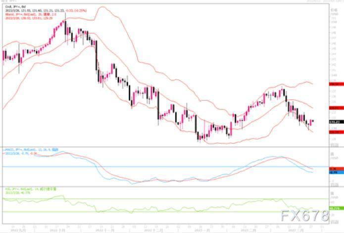 周一(3月27日)美元兑日元周一升至五日高点131.75。在联邦存款保险公司表示第一公民银行将从监管机构收购矽谷银行的所有存款和贷款后,周一市场得到一些喘息机会。美元兑日元也是收复了小部分之前几个交易日的跌幅。日线图在130一线有企稳迹象,随机指标在接近20附近整理。4小时图整体仍处于3月8日高点以来下降趋势线下方,下行趋势尚未显扭转态势。小时图短暂刺穿130后企稳震荡走高,仍缺乏上行动能。近期关注132.00一线阻力表现,若上破,则在4小时图所形成的下行通道就有可能得到破除。而下行方面,目标继续是128附近。