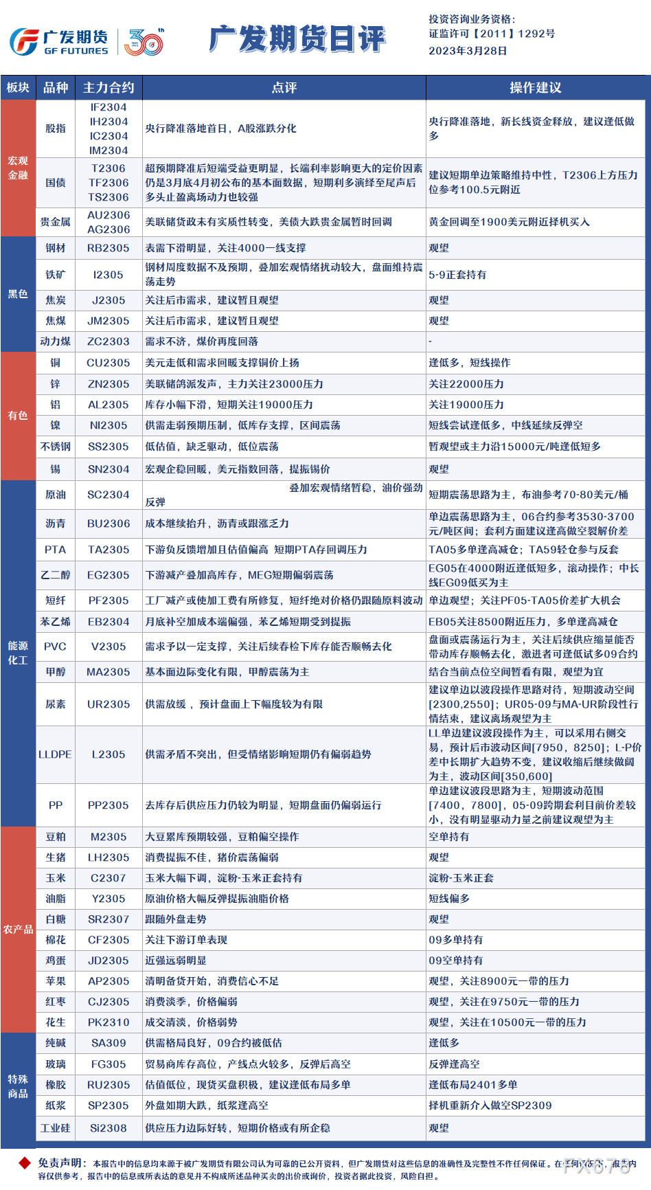 讯——广发期货发布3月28日日评,建议黄金回调至1900美元附近择机买入,铁矿5-9正套持有;铜逢低多,短线操作;原油短期震荡思路为主,布油参考70-80美元;豆粕空单持有,油脂短线偏多,纯碱逢低做多。