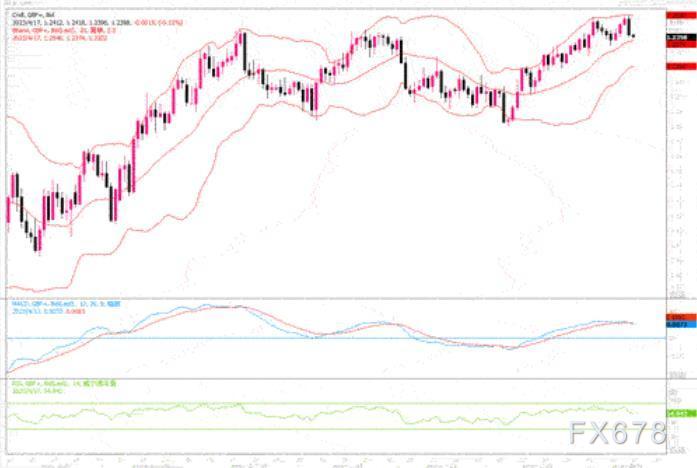 上周五(4月14日)英镑兑美元周五一度触及2022年6月以来的最高水平1.2545美元,然后回落0.81%,收盘于1.2415。上周五由于美国一季度零售销售数据整体平均水平还是呈增长之势,美元低位反弹,从而压制了英镑的攀高气势。市场将密切关注本周三公布的英国通胀数据,以寻找有关货币政策前景的线索;而就业市场数据(周二)、零售销售数据(周五)和标普全球/CIPS采购经理人指数初值(周五)也可能影响英镑走势。上述本周英国将要公布的数据,将会直接影响到5月英央行加息的预期。如果数据皆显强劲,则提高加息预期概率。英镑也会由此获得支撑。当然了,同时期还要看来自美国方面的数据,若也同样表现增长强劲,则美元有极大可能继续反弹。而英镑必然间接受到抑制而走低。仅从技术图表来看,日线级别图上,镑美目前尚能保持在20日均线上方,自3月初以来形成的上升通道暂时保持完好。但技术指标MACD似乎有粘连成死叉迹象,要警惕防范镑美继续作下落调整的走势出现。上行的话,初步目标将是1.25。而下行的话,1.22附近是比较强硬的支撑水平所在。