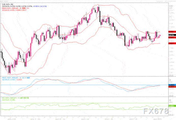 周二(4月18日)澳元兑美元上涨0.39%,至0.6730,此前澳洲央行会议记录显示,该央行在决定暂停加息前曾考虑在4月份连续第11次加息。不过,澳洲央行表示,如果通胀和需求未能降温,它准备进一步收紧。澳联储在货币政策上的鹰派发声,叠加来自中国表现不错的经济数据的刺激,澳元近期获得较好的支撑。日线图上,澳元/美元整体上还是保持着区间震荡横盘的走势,目前汇价重新回到布林带中轨线上方,各类技术指标有拐头上行态势。上方的初步阻力位置在0.68,若能穿越,澳元兑美元有望朝久违了的0.70水平破近。下方当前的初步支撑位在0.6695/0.6700,更强支撑在0.6600附近。
