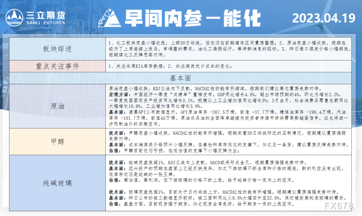 三立期货4月19日早间内参——能化