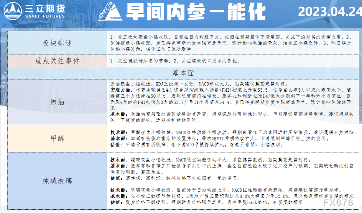 讯——三立期货早间内参显示,原油短期建议震荡走势对待;甲醇技术面建议短线震荡走势对待;玻璃技术面建议短期震荡走势对待。