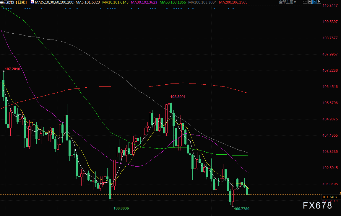 下午的交易中,美元指数下跌0.3%,至101.34,此前跌至10日低点。Convera驻华盛顿的高级市场分析师Joe Manimbo说:“美元难以巩固上周的涨势,因为即将公布的数据可能会显示美国经济增长放缓和通胀下降,这些结果将巩固年中暂停利率行动的理由。