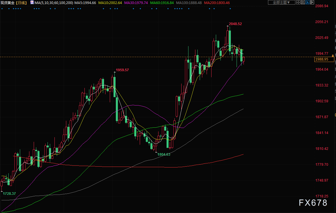 上周,由于美联储官员的鹰派言论,以及调查显示美国和欧元区4月份商业活动加快步伐,黄金跌至2000美元以下。