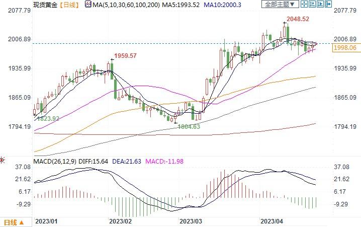 北京时间4月26日10:54 现货黄金 报 1998.06 美元/盎司