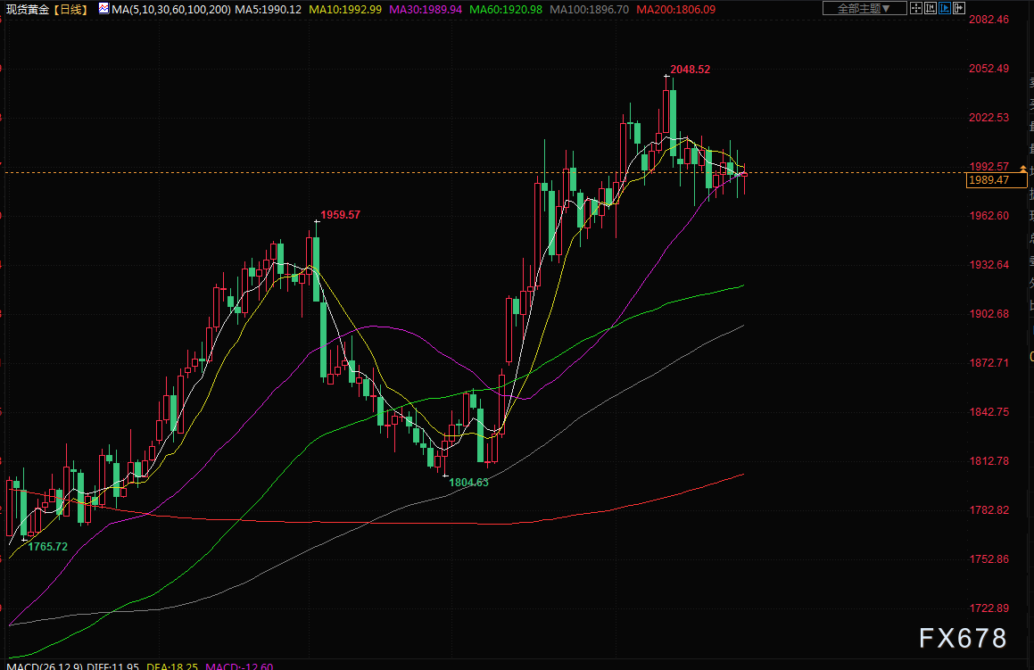 随着银行业危机的展开,黄金在4月中曾攀升至一年来的峰值2048.71美元。
