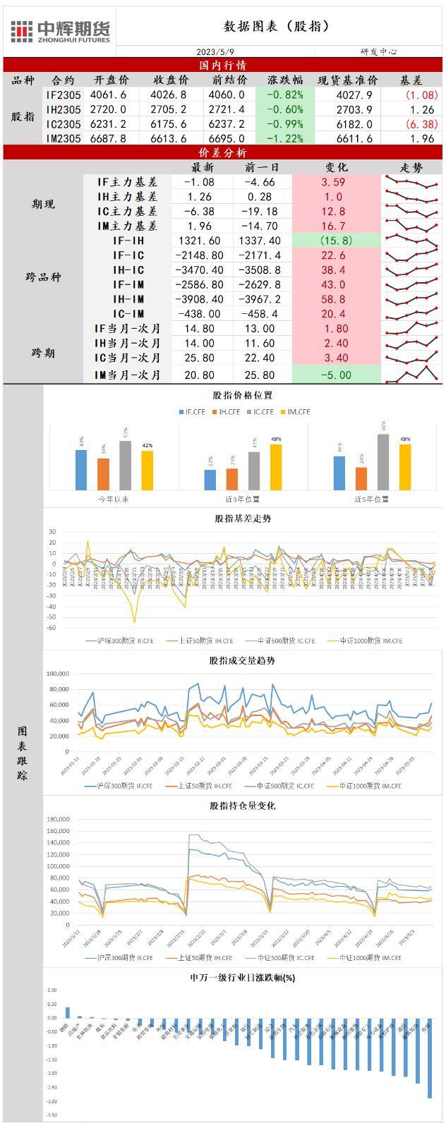 2、今日三大指数集体下跌,早盘大小指数分化,沪指偏强震荡并刷新阶段新高,深证成指和创业板指则震荡下行,但午后指数大幅跳水并维持单边下挫的走势,沪指全天回撤超1%,三大指数尾盘均刷新日低。两市炸板率超过50%,早盘大金融和中字头领涨两市,券商股接力银行股,掀起个股涨停潮,中特估概念下“一带一路”相关个股也获得强势表现,医药,新能源和半导体行业全天表现弱势,传媒板块午后加速回落,市场情绪尚未完全修复。两市赚钱效应极差,全天上涨个股数量不足900只,市场放量下跌,凸显沪指在3400点附近有较大压力,北向资金尾盘积极流入全天小幅净流入近10亿元。隔夜美股涨跌不一,纳指和标普500小幅收涨,道指收跌。标普500和道指早盘在地区银行股的提振下小幅高开,但随后立即转跌道指维持水下震荡,标普500在能源股的提振下尾盘转涨,纳指则全天低开低走。投资者在公布通胀前表现得较为谨慎。央行方面,芝加哥联储主席Austan Goolsbee认为银行的信贷紧缩正在开启,并称现在就预判6月利率决定为时过早,美联储的政策行动必须以数据为依据,同时避免经济硬着陆。另一方面美国的债务上限问题迫在眉睫,美国财长耶伦再次预警,若未能在6月初之前及时提高债务上限将导致美国“经济急剧下滑”,制造“金融和经济混乱”。拜登将在本周召集国会两院的两党领袖开会商讨对策。经济数据方面,纽约联储的消费者预期调查显示,一年通胀预期从4.7%回落至4.4%,三年通胀预期从2.8%升至2.9%,但未来一年的家庭消费支出前景大幅下跌0.5%至5.2%,创2021年9月来最低。美国消费者情绪低迷,未来有望带动通胀进一步下行但作为美国经济最大动力之一,消费支出放缓将使未来经济前景更加黯淡。美联储发布高级贷款专员意见调查报告,一季度结果表明信贷收紧,商业贷款需求变得更加疲软。 针对大中型借款人收紧信贷条件的银行机构占比从44.8%升至46%,贷款需求更加疲软的银行占比创2009年以来新高。美国银行业危机仍在发酵,高利率的贷款环境使美国实体经济开始受到冲击。国内方面,今日国内公布4月进出口数据,受对东盟出口和转口贸易增速大幅下滑的影响,4月出口同比增速由14.8%回落至8.5%,但在去年同期低基数的效应下对本月出口增速形成一定支撑。4月进口同比增速受量价齐跌的影响而进一步下滑,由-1.4%下滑至-7.9%,凸显出我国内部需求不足的问题较为严重,仅部分与能源安全和基建相关的商品进口数量获得同比增长。整体来看,内需不足叠加外需走弱对经济的修复造成较大压力,市场信心有所动摇,“中特估”行情在午后未能延续,市场分化进一步加剧,蓝筹权重对指数的拉升并未带动增量资金的入场反而对其余板块资金形成排挤,短期内股指结构性行情不变。申万一级31个行业中3个行业上涨,其中钢铁行业涨0.38%,传媒行业下跌2.87%。