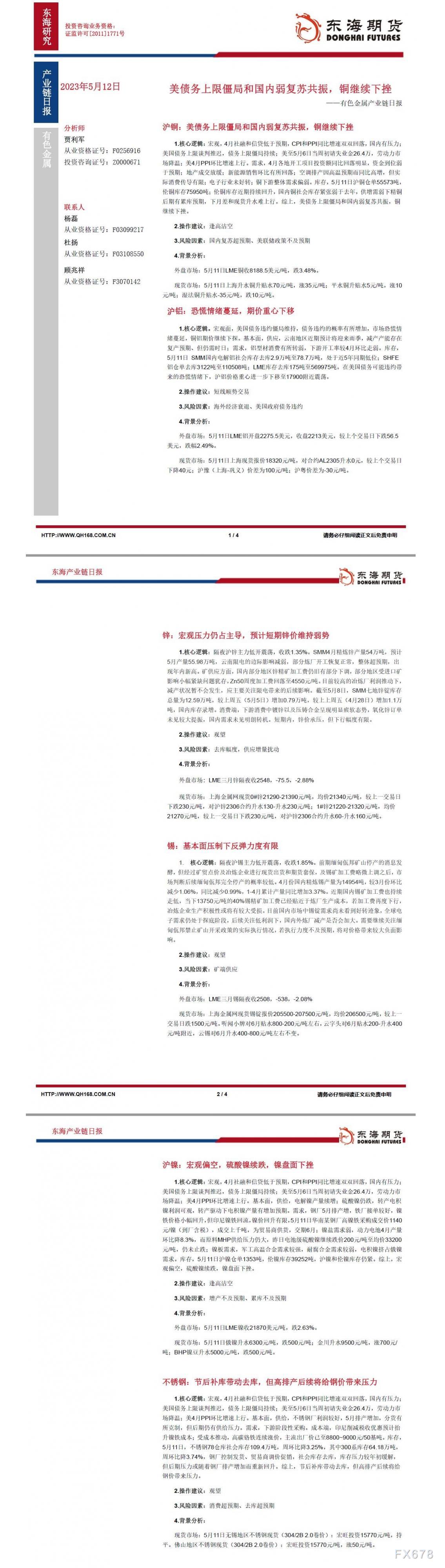 讯——沪铜:美债务上限僵局和国内弱复苏共振,铜继续下挫