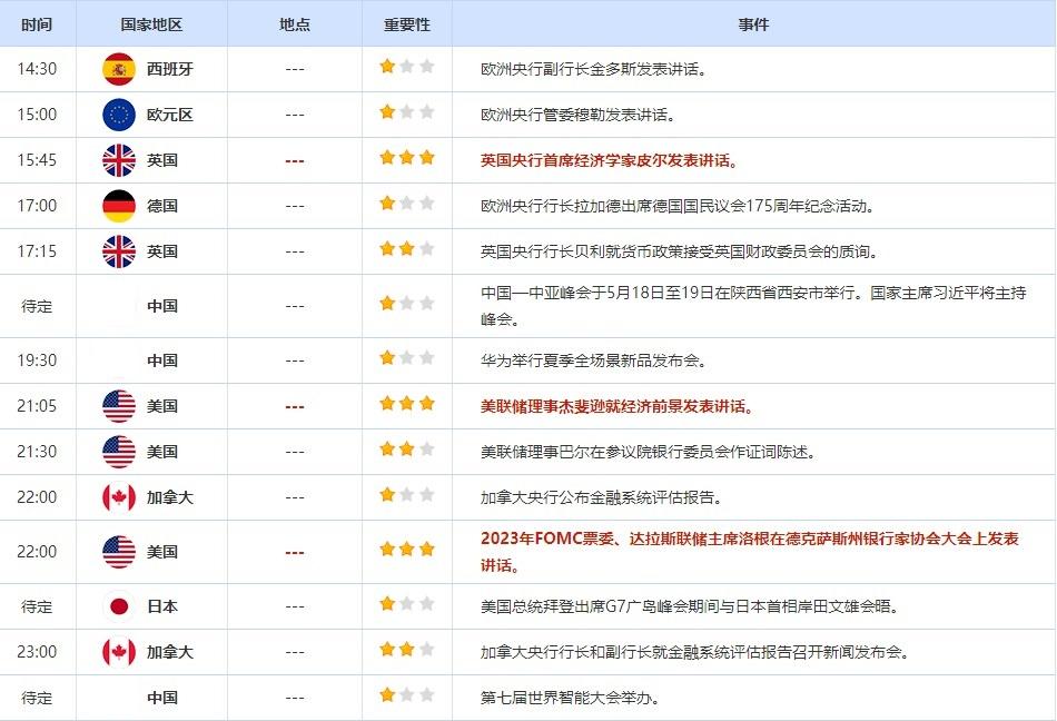 讯——5月18日,投资者需要关注的重点数据:日本4月未季调商品贸易帐,澳大利亚4月季调后失业率,日本4月季调后商品贸易帐,澳大利亚4月就业人口变动,美国截至5月13日当周初请失业金人数,美国截至5月6日当周续请失业金人数,美国4月成屋销售年化总数。需要关注的大事件包括英国央行首席经济学家皮尔发表讲话,美联储理事杰斐逊就经济前景发表讲话,达拉斯联储主席洛根在德克萨斯州银行家协会大会上发表讲话。