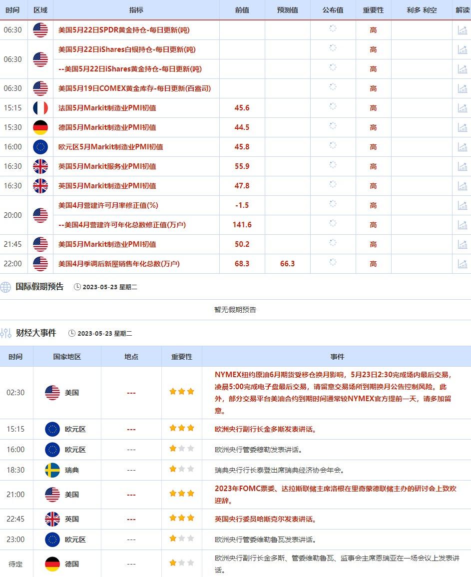 ②5月23日(周二)关键字:欧元区和美国5月Markit制造业PMI初值,欧洲央行副行长金多斯