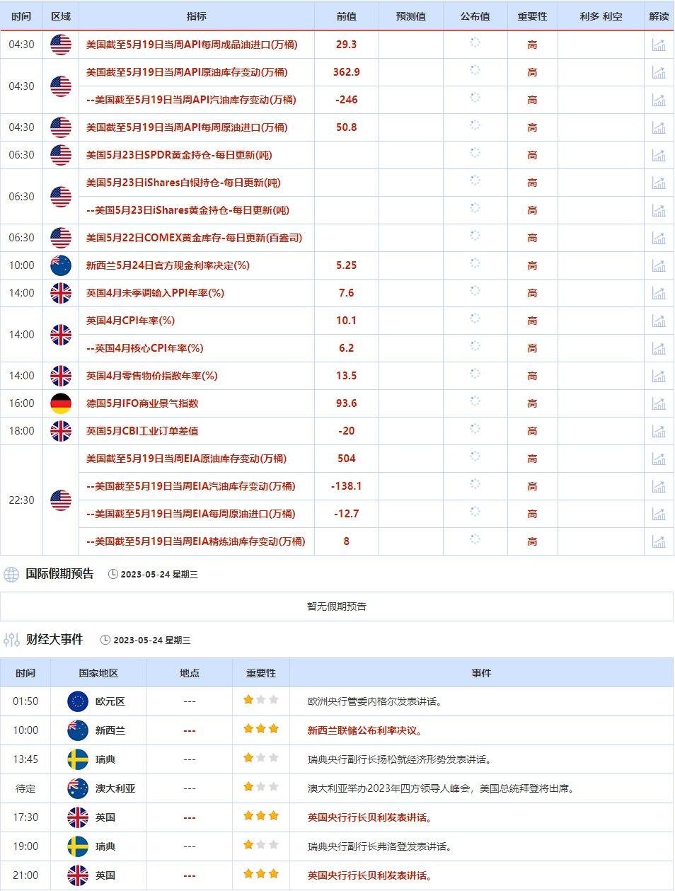 ③5月24日(周三)关键字:美国截至5月19日当周API和EIA原油库存变动,新西兰联储利率决议,英国4月CPI