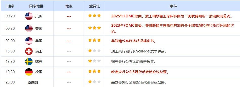 5月31日,美联储理事鲍曼和2025年FOMC票委、波士顿联储主席柯林斯在“美联储倾听”活动上致开幕词,曼恩也将发表讲话,投资者需关注他们对经济和货币政策前景的最新观点。