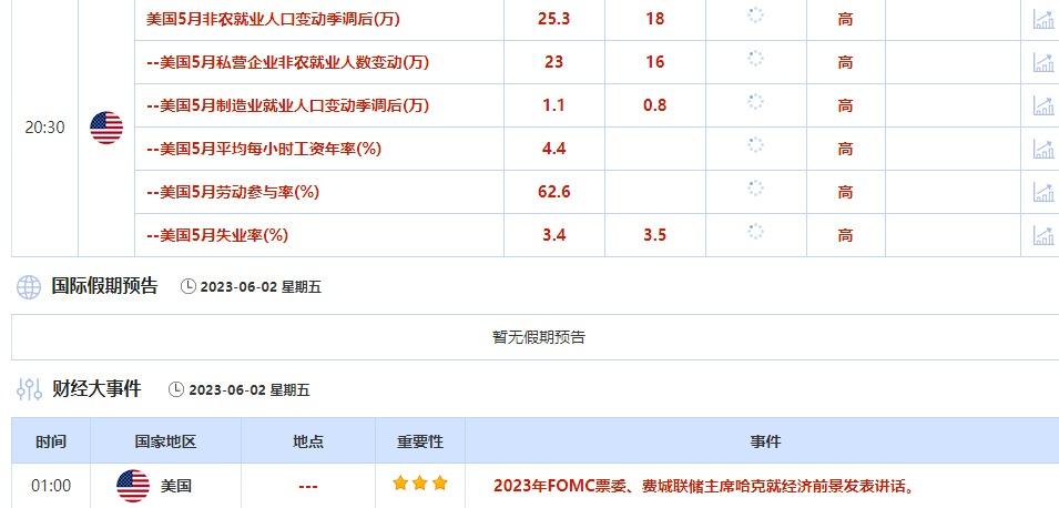 ⑤6月2日(周五)关键字:美国5月非农和失业率,费城联储主席哈克