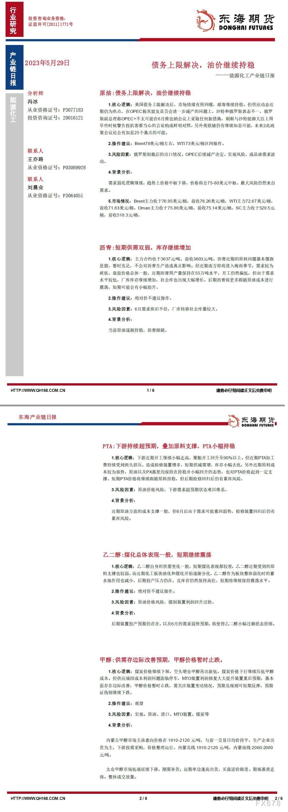 讯——原油:债务上限解决,油价继续持稳
