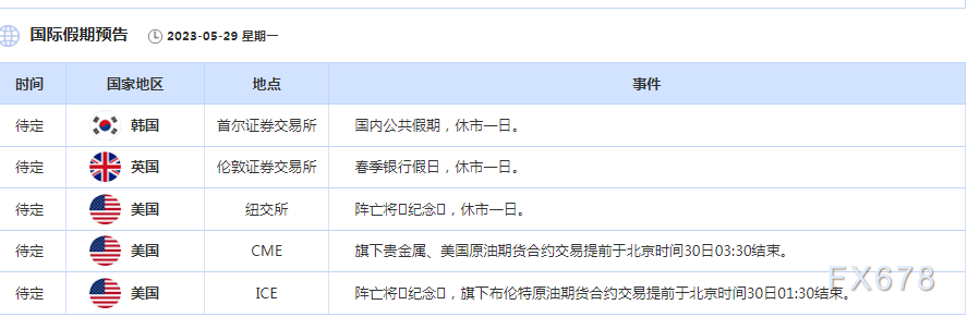 讯——北京时间周一(5月29日),本周继续聚焦美国债务上限结果落地,关注美联储官员讲话,以寻求更多有关利率政策信号;另外,关注欧洲央行金融稳定评估报和美联储经济状况褐皮书。