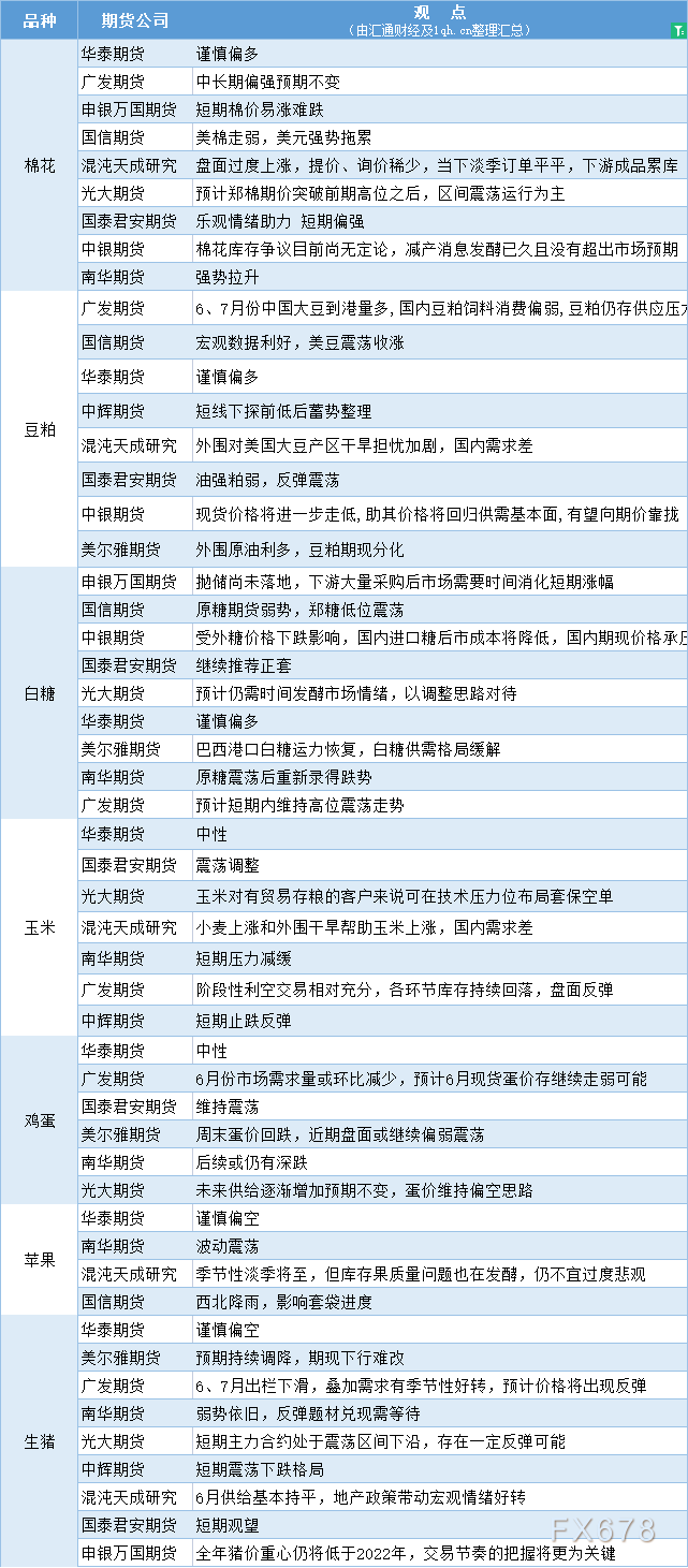 期货公司观点汇总一张图:6月26日农产品(棉花、豆粕、白糖、玉米、鸡蛋、生猪等)
